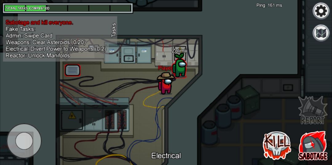 接着在神不知鬼不觉的溜走,直到有任何人看到尸体按下Report回报为止。