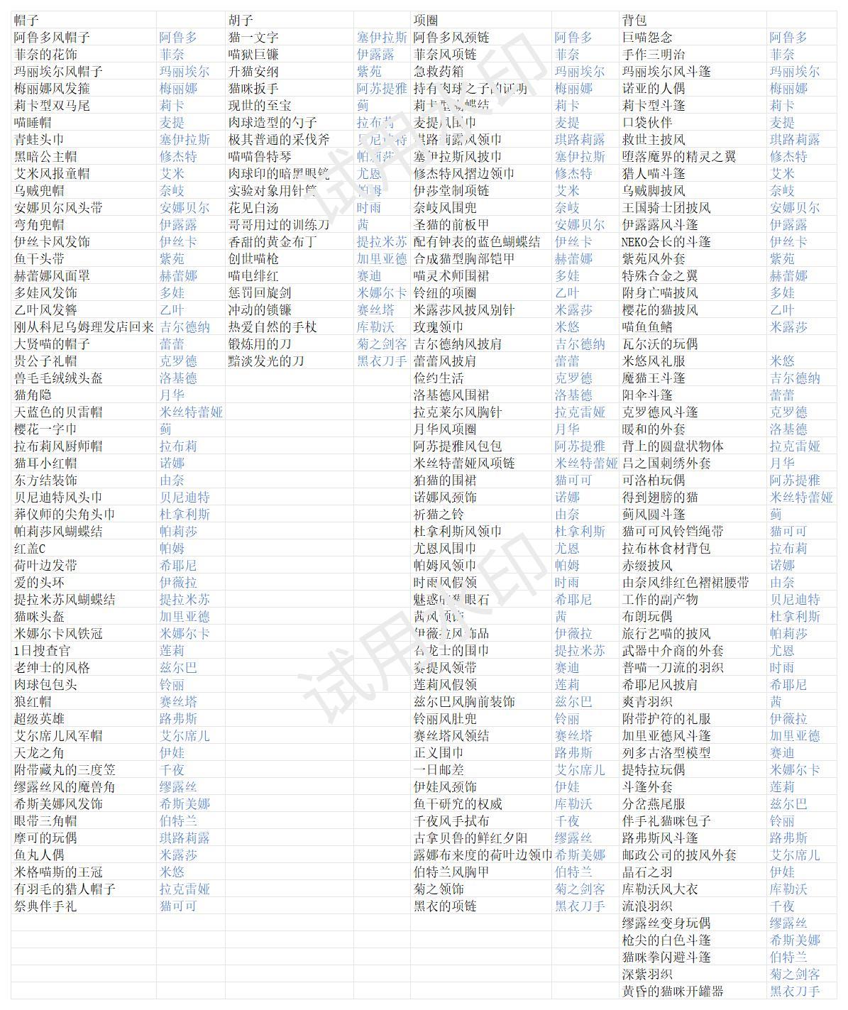【攻略】猫咪商店全员装备匹配