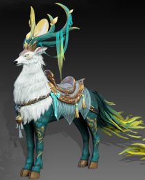 玉轮孔武有力的鹿角承托璀璨的玉轮,玉轮的耀光照亮了猎手前进的道路,精致小铃铛和流苏鎏金鹿鞍彰显骑士的高贵身份,墨绿与官黄交错的鹿尾在驰骋间闪耀着星星点点,你瞧是不是有在天宫驰骋内味儿了!