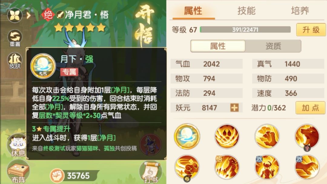 净月君资质和成长
