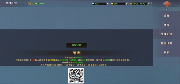 1、开局跟着主线任务走,了解一些操作方法,解锁第二个角色,解锁宠物系统等,武器的话零氪低氪的最优选是一近(火刀)一远(冰杖)。左上角的分享、游戏界面点击齿轮——兑换礼包分别输入以下代码05608(★3-7级使用★)、update66、update80、meetlove、woxinren、meethykb、每日礼包5201314