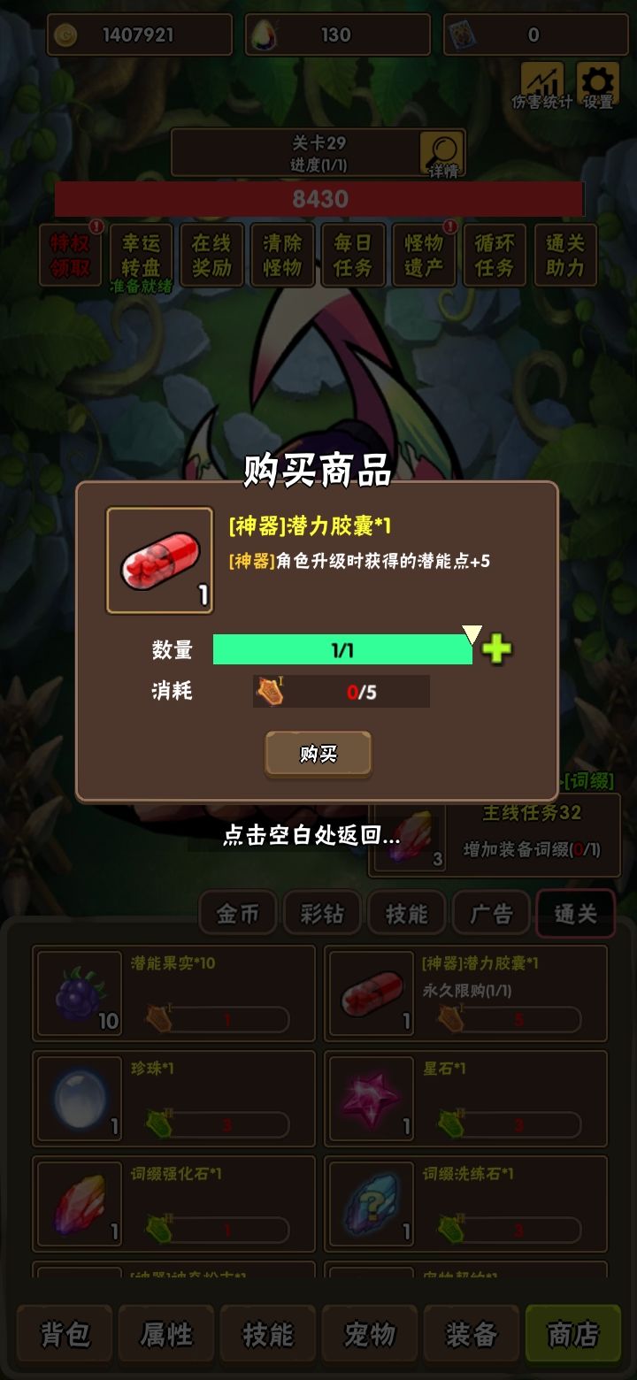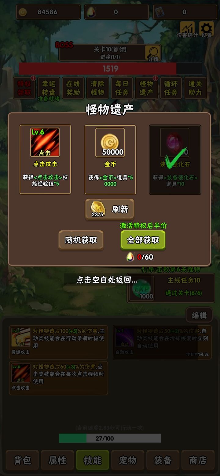 然后技能选择方面彩钻的几个技能都挺猛的,但是后面升级比较难,需要从技能商店里面通用抽,但是前期买带上都加成很高,我就把属性挂上去,怎么选择看自己
