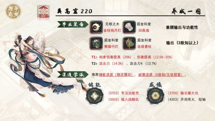 莫高窟220功能性很强,非BOSS环境下万能插件。3致知灵活性大幅度提高,也能打打输出,但限制很大,不太推荐当主C去玩。
