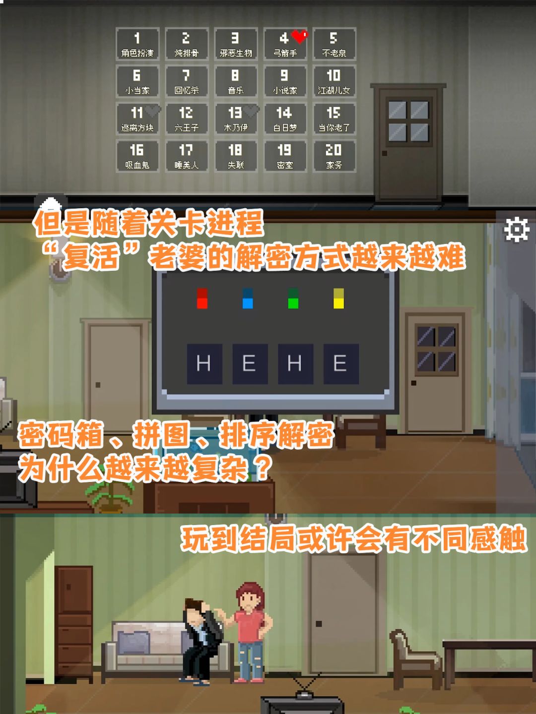 ,而随着游戏关卡进程,将老婆哄复活的方式越来越复杂......