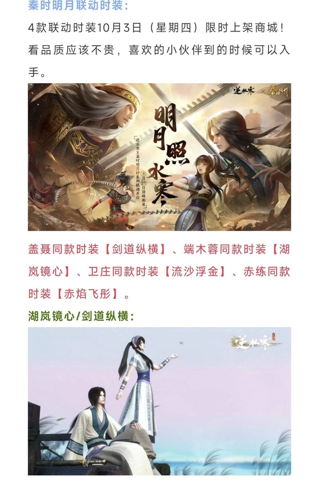 后天上线4款新时装,新增4款祥瑞,明天可得150代金券,今天史诗挑战调整,秦时明月外观*9!
