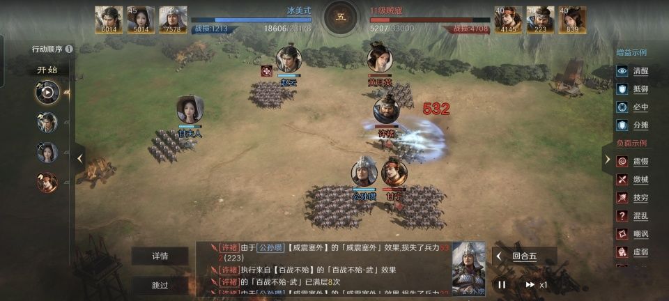 甘夫人战法:皇思淑仁+运筹帷幄+清风驱疾。韬略库:汉女传(专属)+兵情残章+避险手抄。长弓兵特性洞悉,专精点亮袍泽同心。刘备的原配夫人除了给自己和赵云、公孙瓒加规避,还肩负起了削弱敌方基础能力、驱散负面状态和提供治疗的任务。虽然鱼鳞阵的后排可以吃到会心和奇谋的提升,然而甘夫人并不打算抢人头。