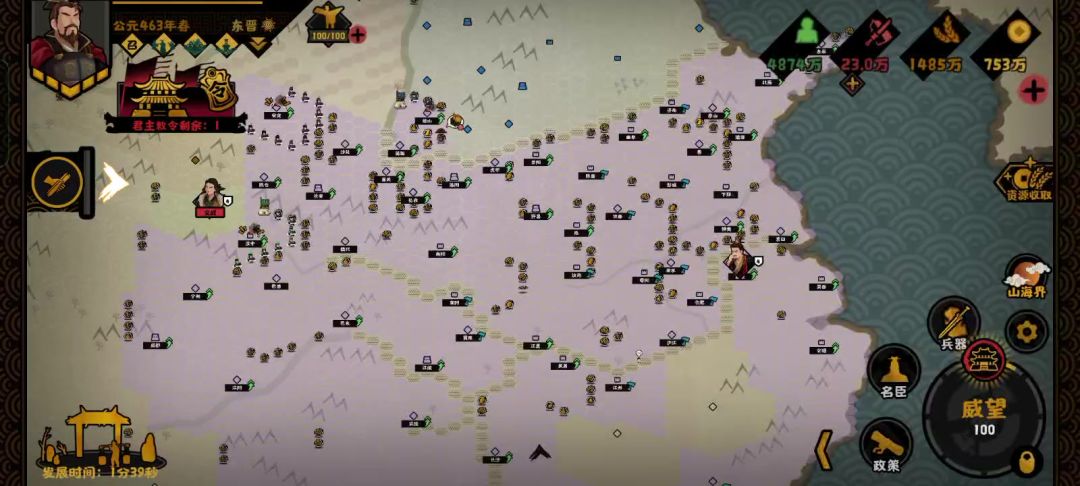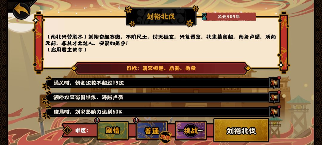 刘裕北伐剧本君王敕令没有使用限制。中书省革新这些先点了,然后士族联姻这些再点。这些全点光了,后面就是每回合密谋清洗和打压士族轮着点。