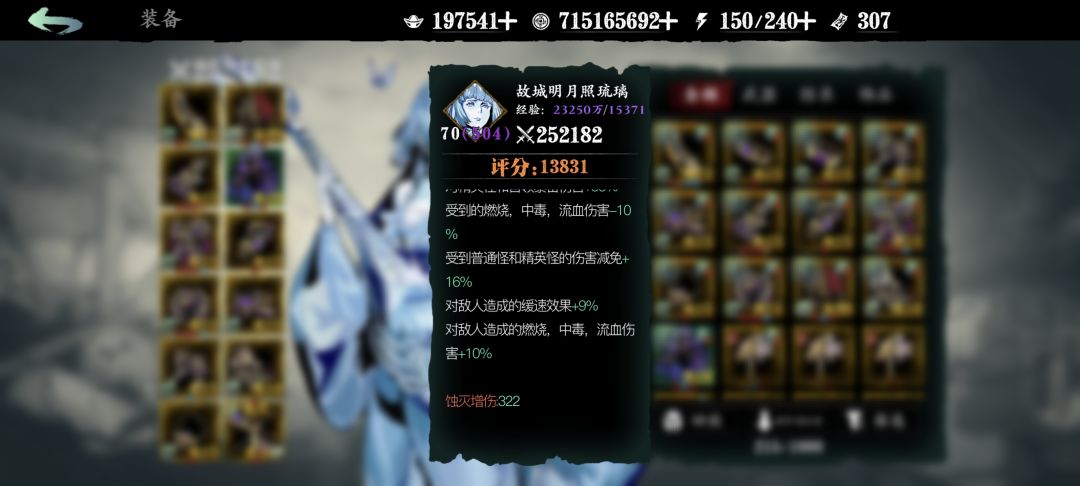 以下是调过的几个号蚀灭属性和6桩伤害参考: