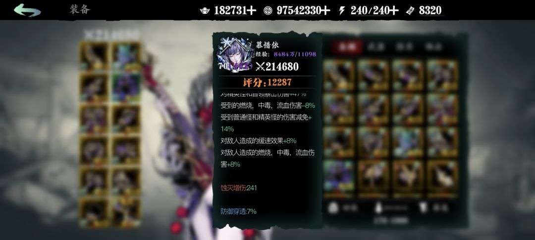 号三:除武器外其余装备几乎3宗师+铸炼毕业,红3绿卡只有醉青鸾