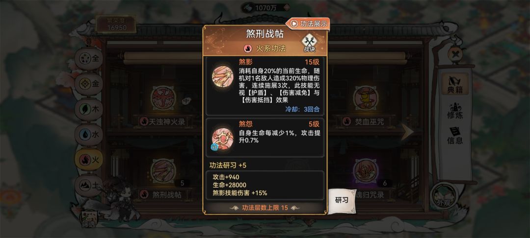 火老李: ①装备:修罗套 ②法宝:赤血剑坯(如图三)主法宝用火系三阶,但是技能一定要用二阶火系火铜或者火骨③道兵:月落孤影 (如图四) ④技能:煞刑战帖+赤冥神功(如图二图五)