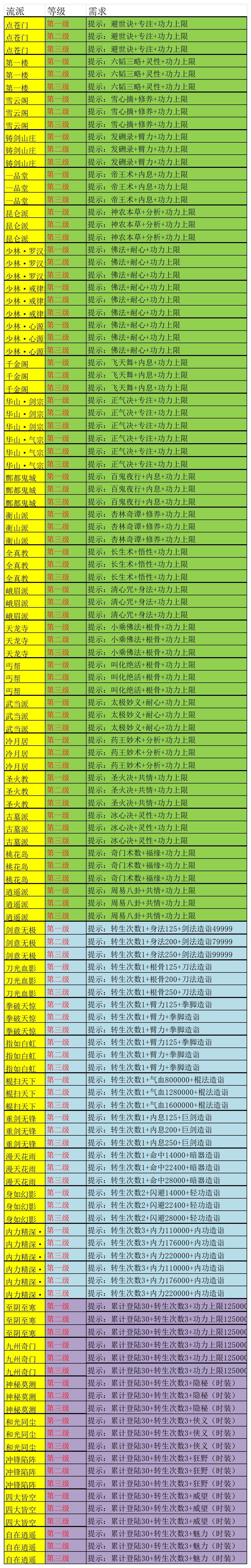 流派激活条件