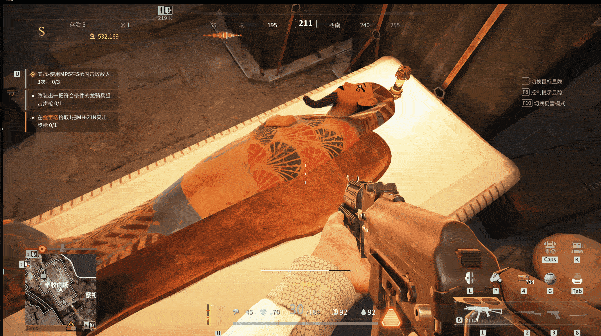 出密室后左转有平台,爬上去后木箱上会刷法老大金,无人机等。