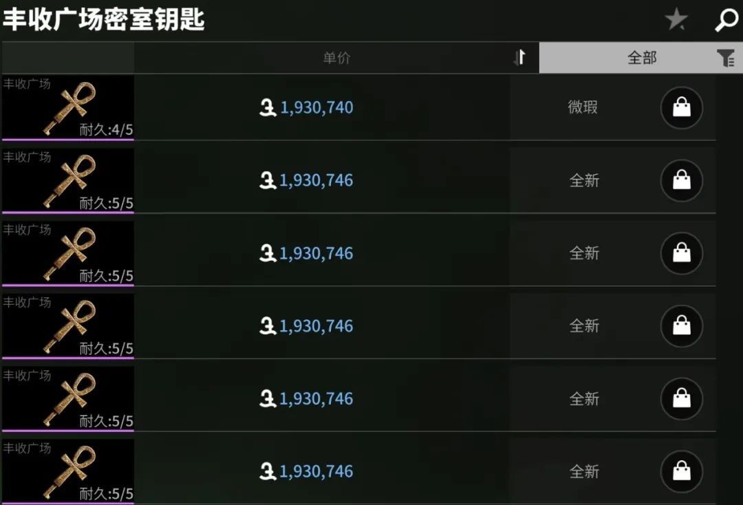 金字塔密室出货率虽然高,但其钥匙价格也是非同一般的,如两枚必出币子的密室钥匙,均价已经去到190w-250w新镑!