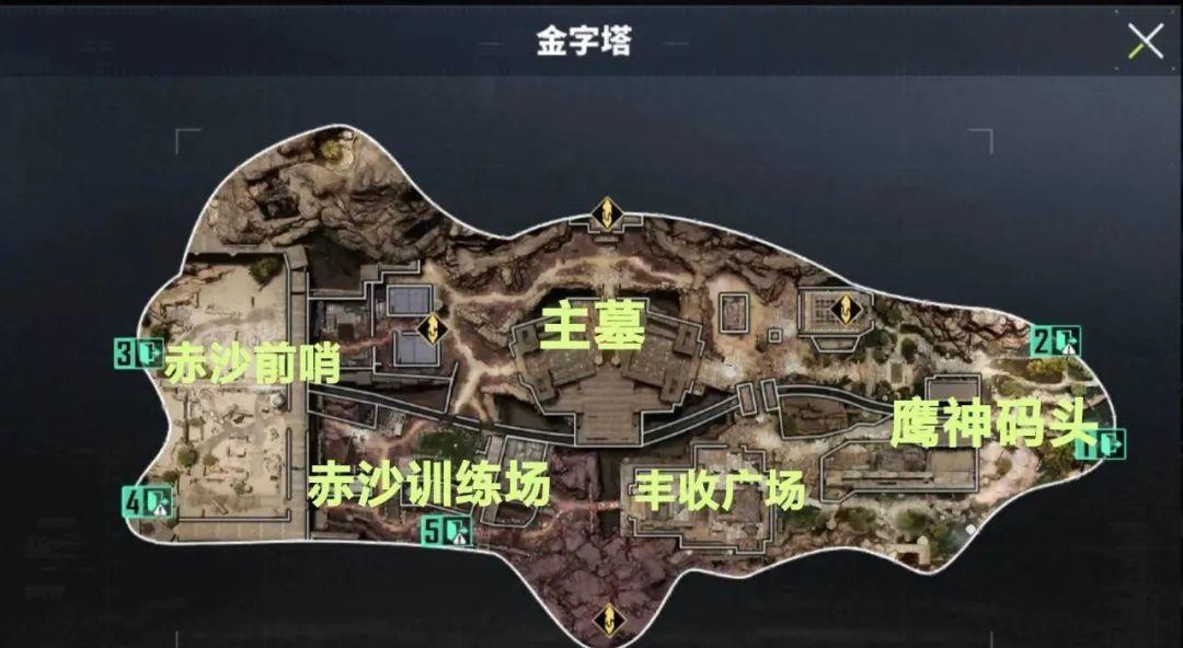 金字塔一共5个区域,分别为鹰神码头、赤沙前哨、赤沙训练场、丰收广场和主墓。地图小,节奏快,上手成本低,萌新萤火虫也可轻松驾驭哦~