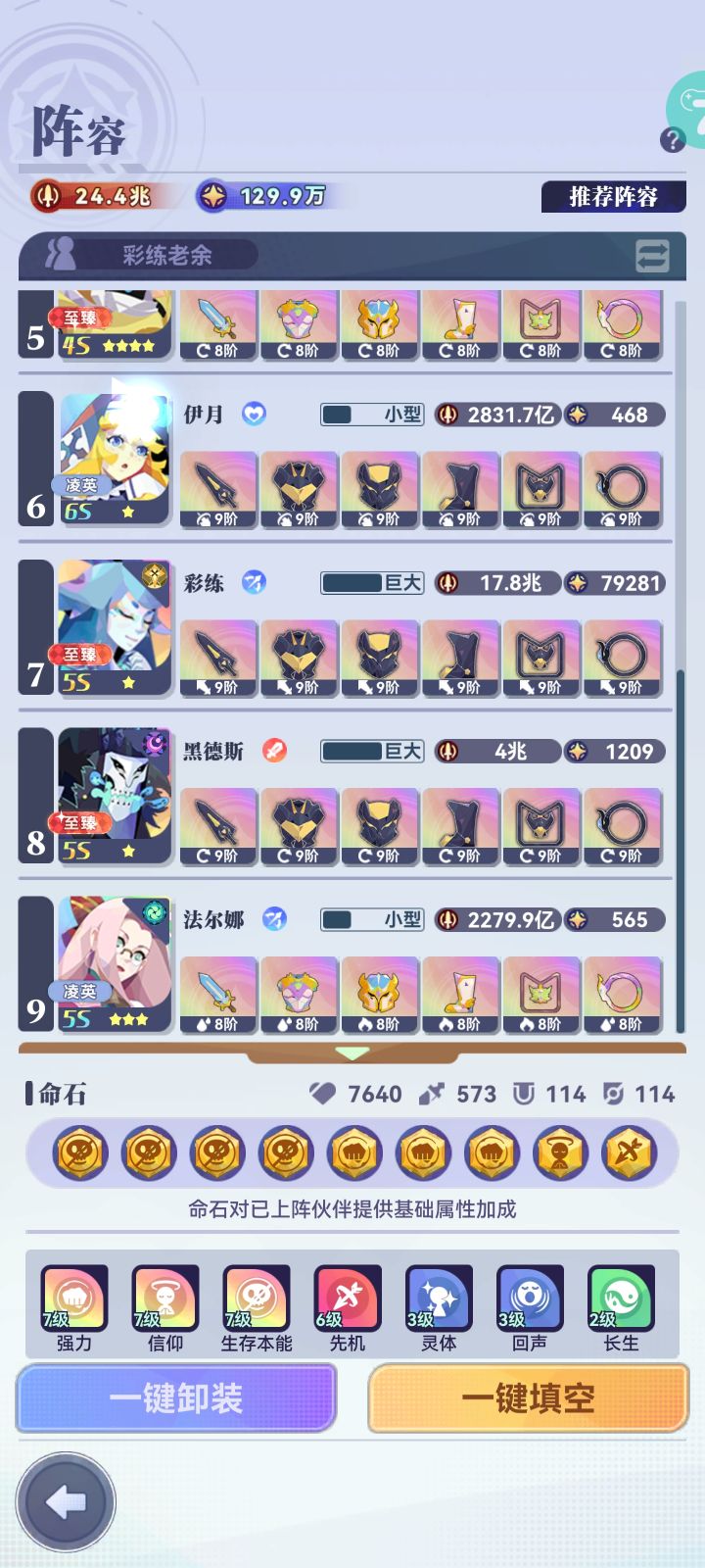 目前冒险90%用彩练阵容,10%用黑德斯阵容,将彩莲或黑德斯放到单核的位置,使用增伤套装,老余使用疾速套装,其他的战士用复活套装,射手用射手套装,辅助用疾速套装即可,其中一个伙伴带3伤口3点燃,连携:信仰=生存=强力>先机>娴熟,魔力,敏捷,斩击。个人见解,仅供参考
