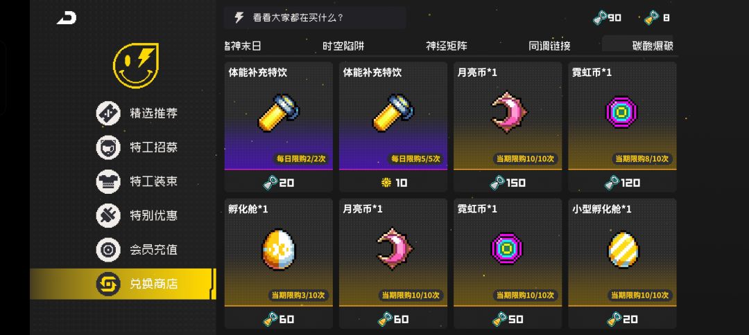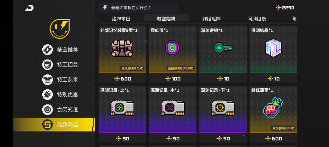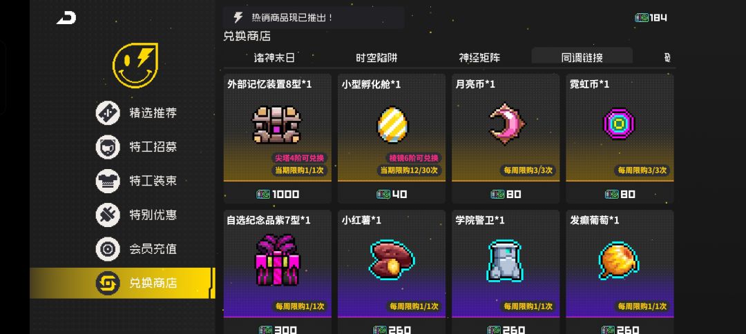 神经矩阵,推荐每日0点刷新4个随机纪念品,按需兑换。