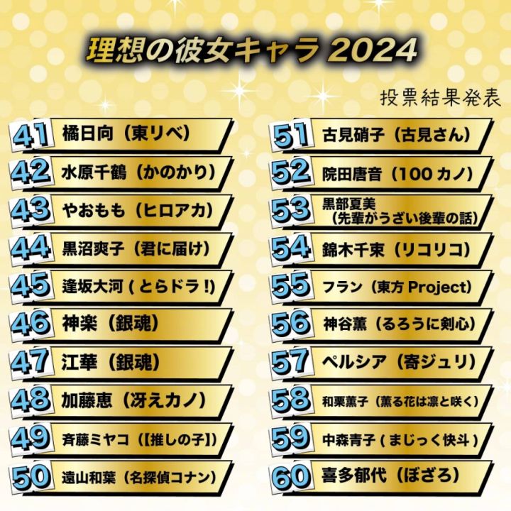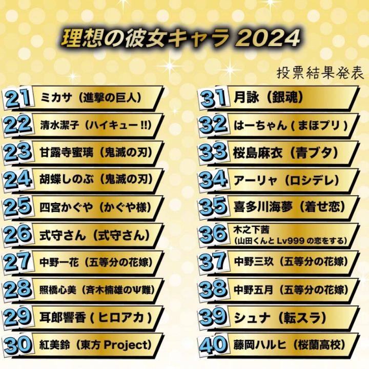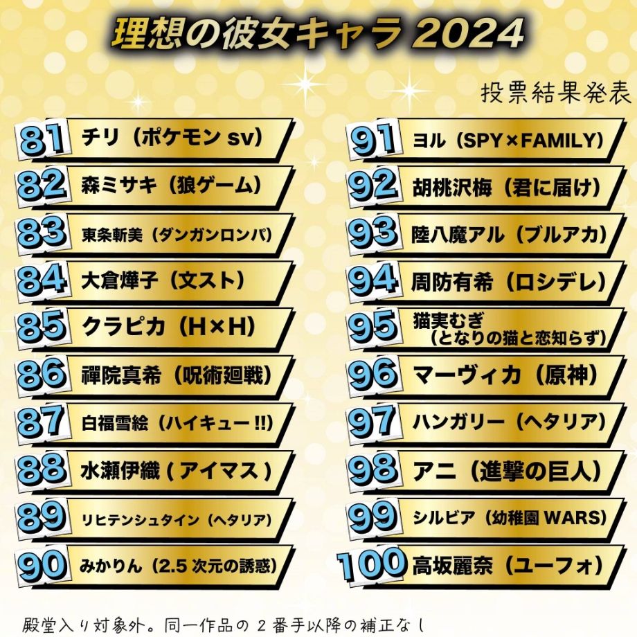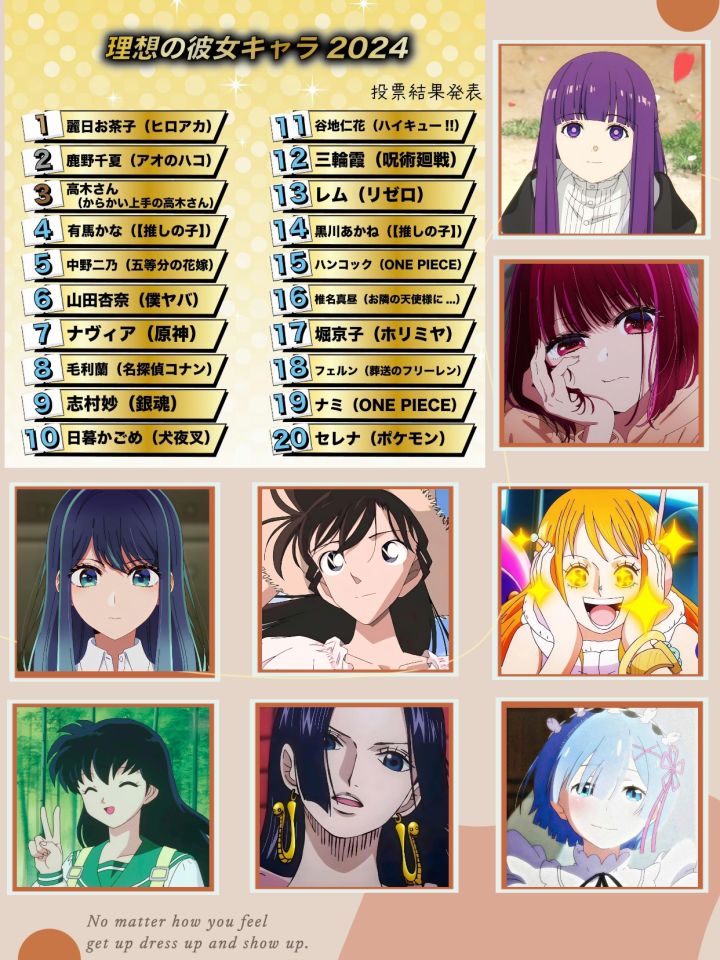 日网粉丝票选【动漫理想女友2024】TOP20🏆