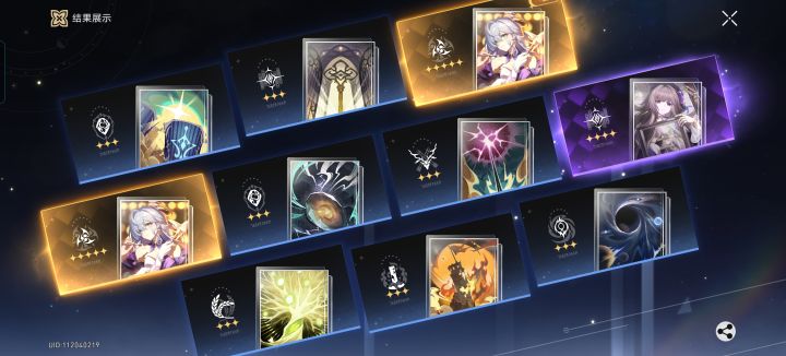 本来想给本来想给飞霄出个一命知更鸟的,可是手快点错成专武池了,结果就出了双金,而且距离上个金才五抽