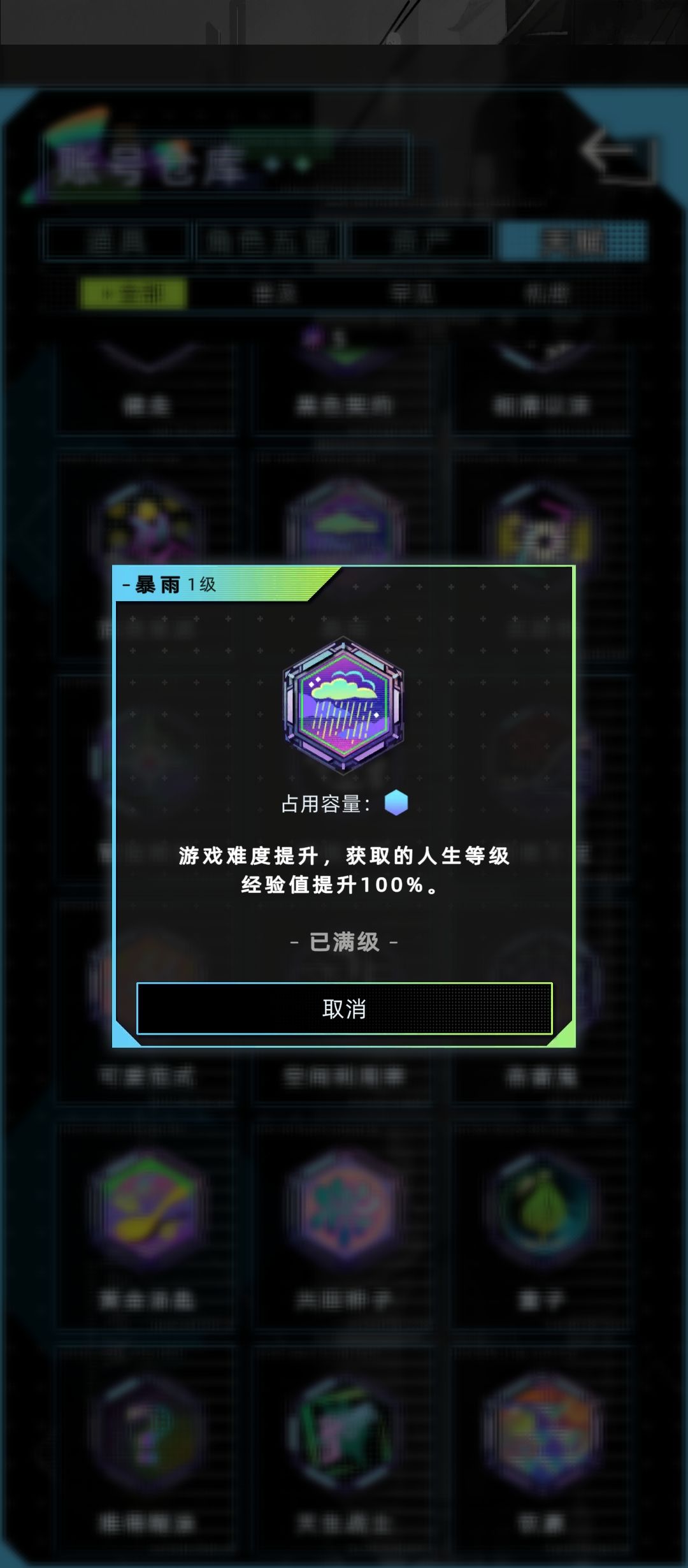 然后有一个组合:黄金汤匙+暴雨,这两个配合起来可以刷人生等级,差不多一分钟不到,就有一千多,看广告就有两千左右,还能再加个天妒英才,保底两千,最高三千。