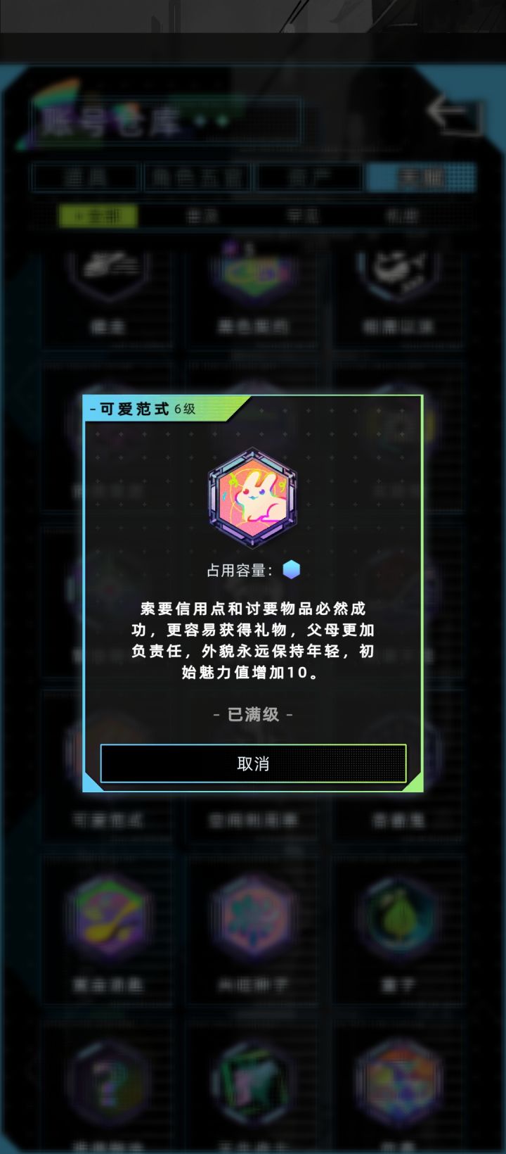 有用的没多少,这边唯一建议先拉满的是《可爱范式》,拉满之后青春永驻,角色不会衰老,体验最好。