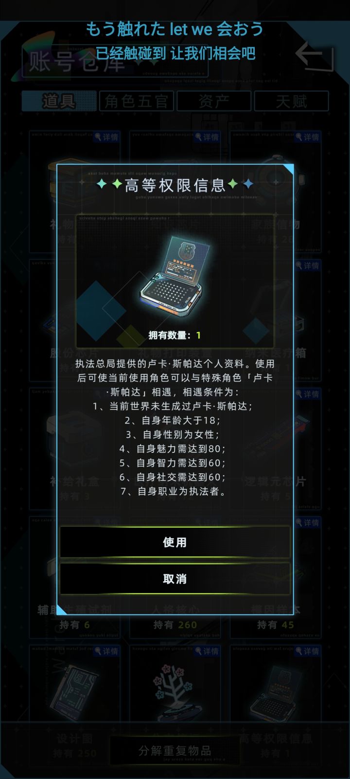 1.道具“高等权限信息”可重复使用