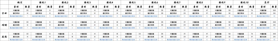 7.纯自己全部强化过一遍统计的表格,若有错漏,欢迎指出