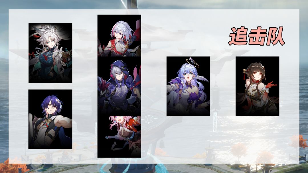 【追击队】飞霄/真理医生+托帕/貊泽/巡猎三月七+知更鸟+灵砂。