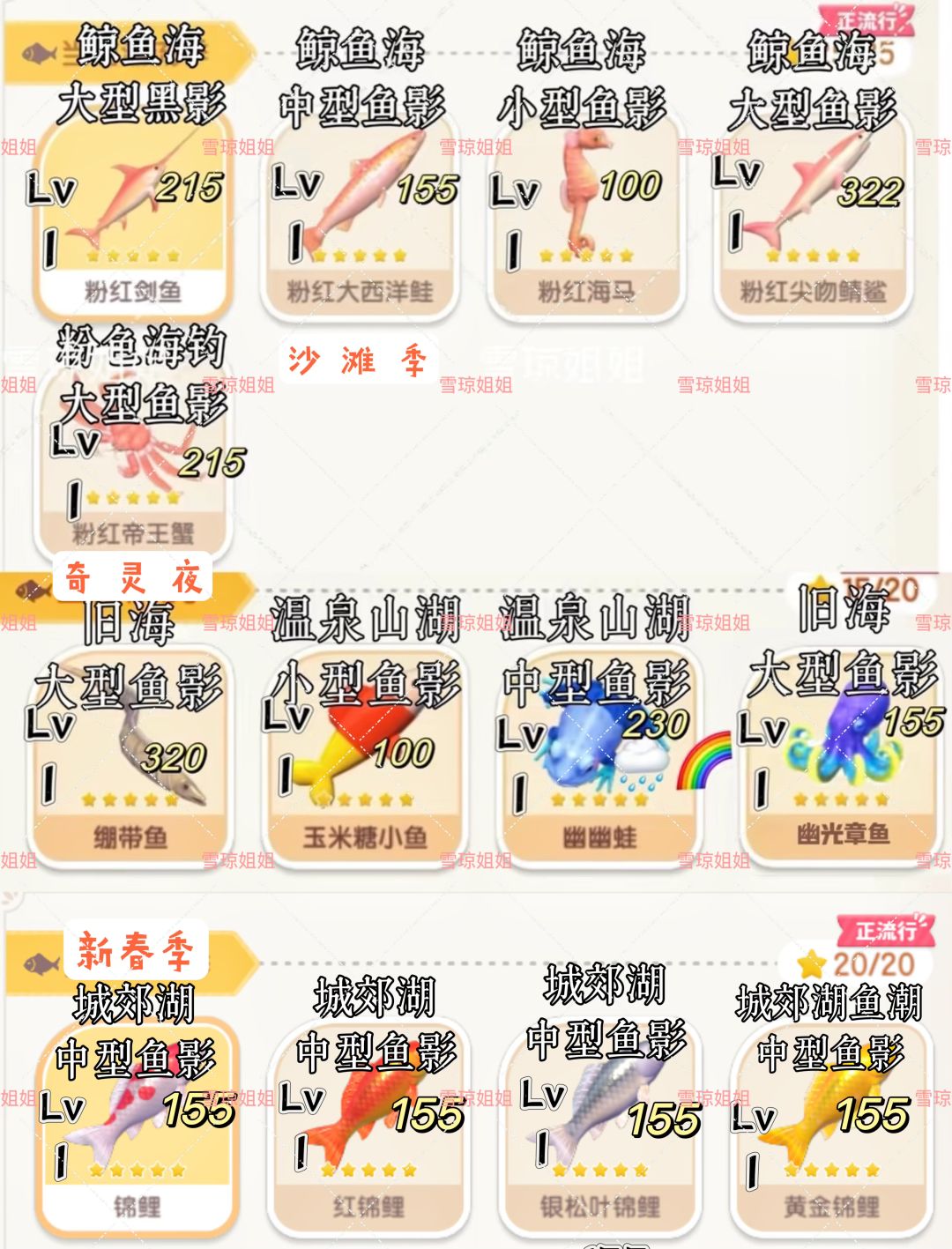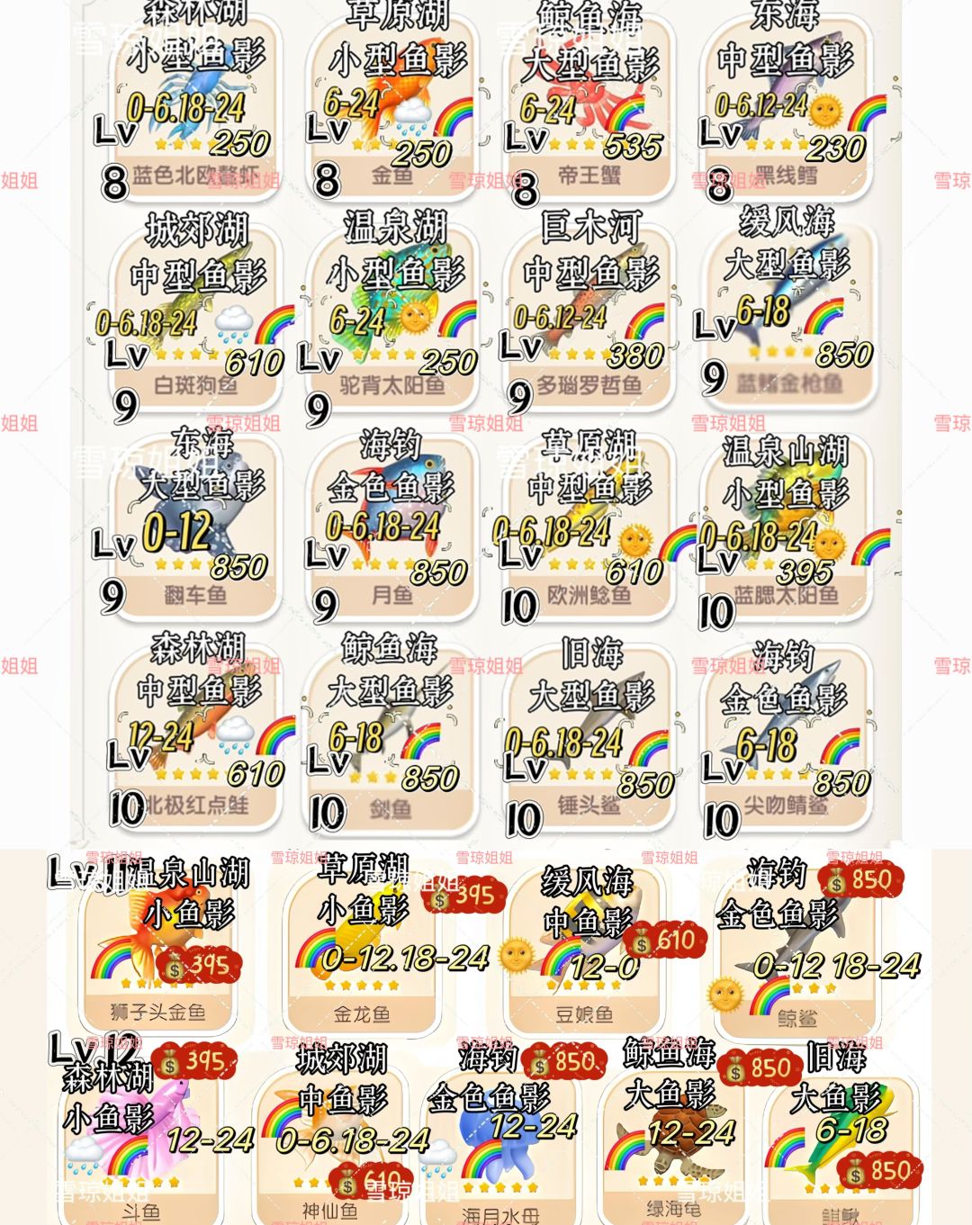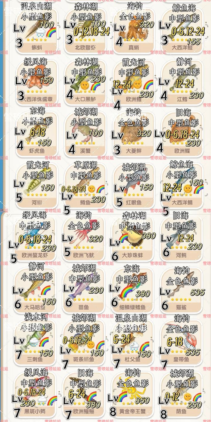 1-12级钓鱼图鉴!鱼影大小 | 特殊时间天气