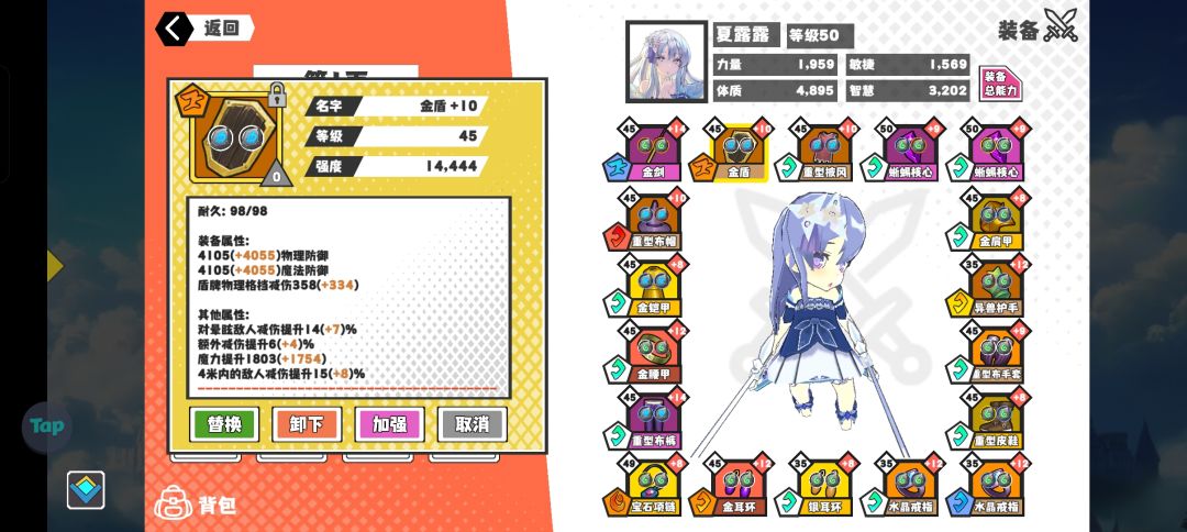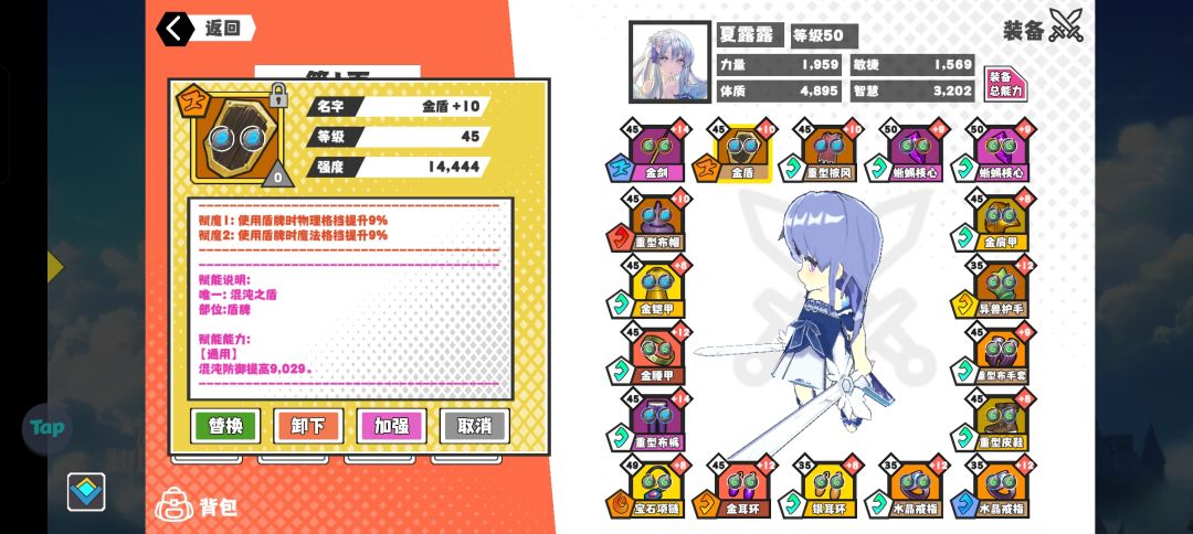 前言:夏露露t玩法主要依赖于赋能的50%减伤和蓄力自带的40%减伤,二者乘算可达到70%的真实减伤,且蓄力根据魔力回盾,所以露露t的主要玩法是堆减伤、智力、魔力、体质这三个属性。