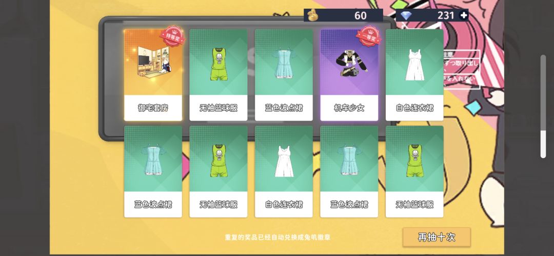 有谁和我一样,为了防止保底被坑,就把衣服买了。不过我当时才只有71抽,保底100抽还差29抽。刚买完衣服不到一分钟,手痒,点了个十连。结果出了