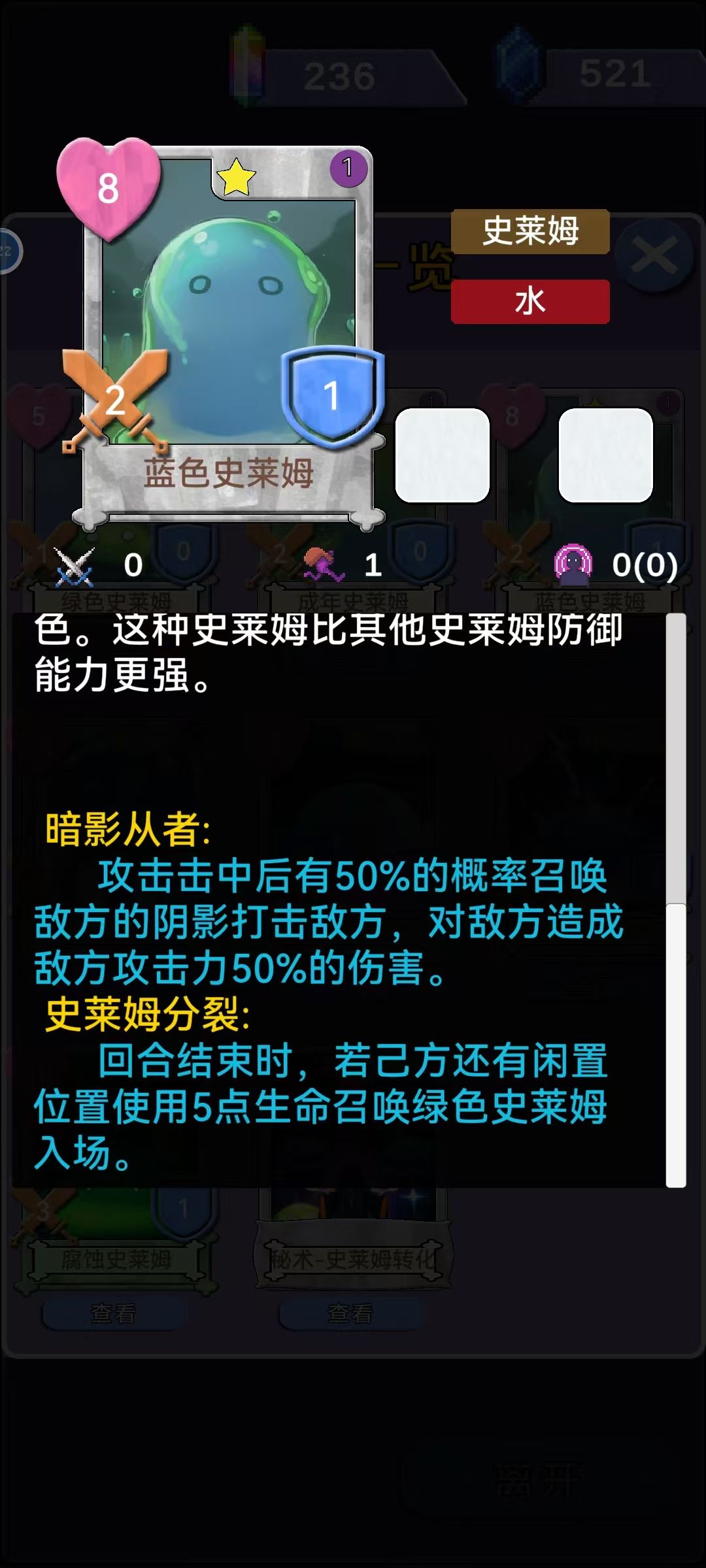 有史莱姆分裂的角色,绿色史莱姆带替身特性[抵挡伤寒],或者绿色史莱姆两个特性都有也行