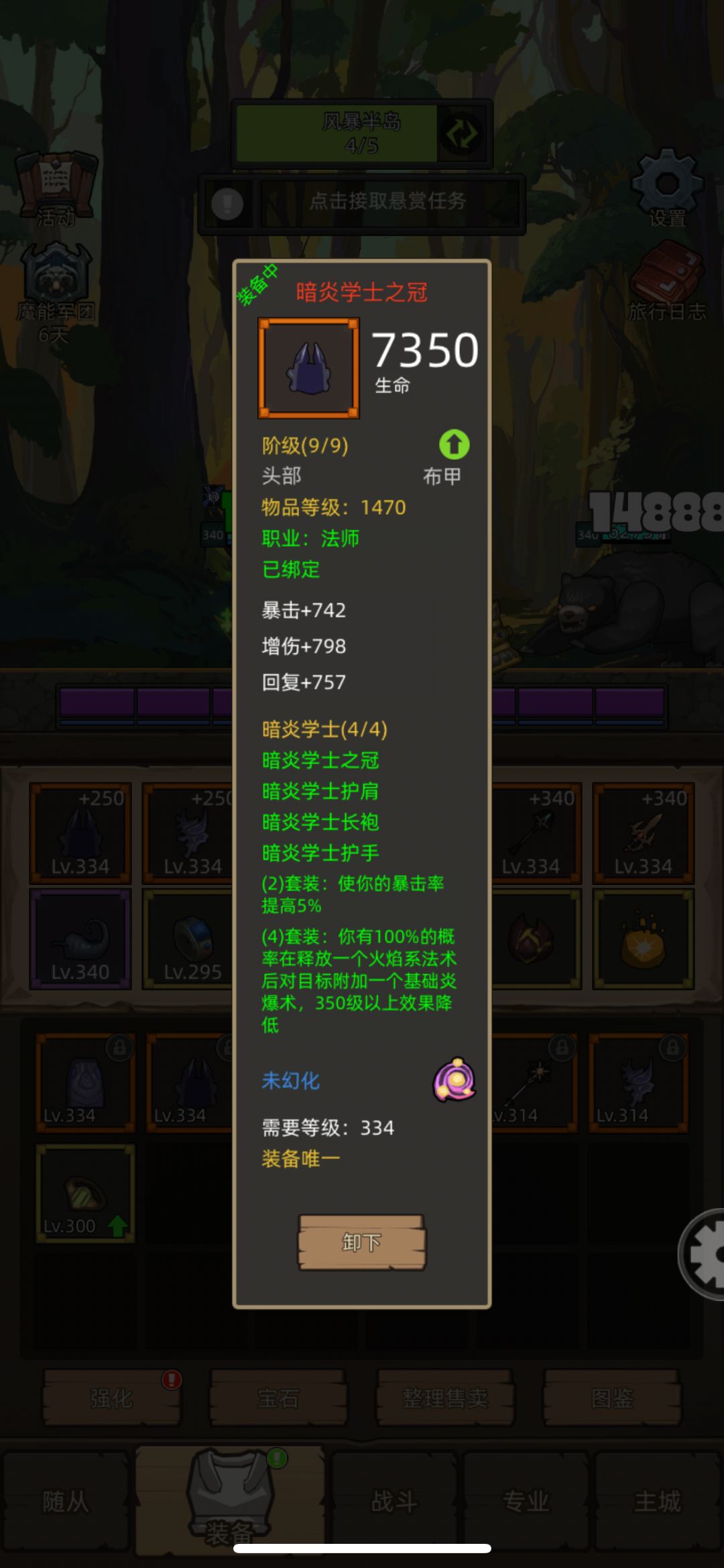 暗炎学士套装 + 激励法仗(等级*2攻强)+ 熔岩劫掠尖刀(10%暴击)