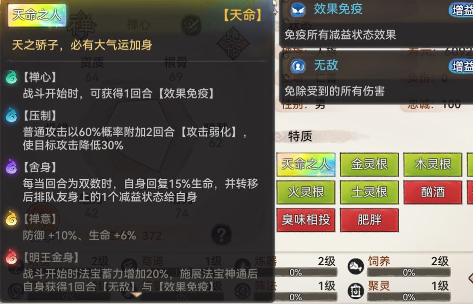 接下里,我们来简单聊聊【体质】与【词条】,个人认为,其实体质也算一种【词条】,比如【修罗之体】,就是一种可以影响弟子【六维】并给弟子加深伤害的词条。