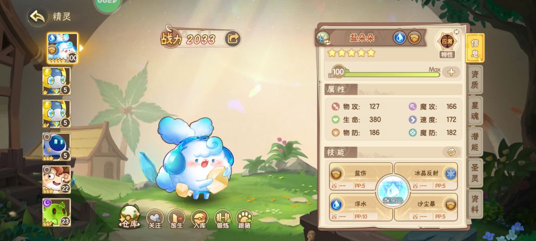一、1只盐多多+5只炮灰(练度如图,买个沙尘暴技能石),特性应激,血量380物抗180左右就行了,沙尘暴和盐伤自己看技能描述