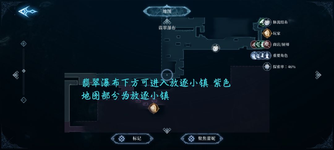 翡翠瀑布下面直达放逐小镇 下来之后 大概率小怪头上有个标志 这个标志代表着这个怪等级高于我们 说人话就是打人疼 经验高
