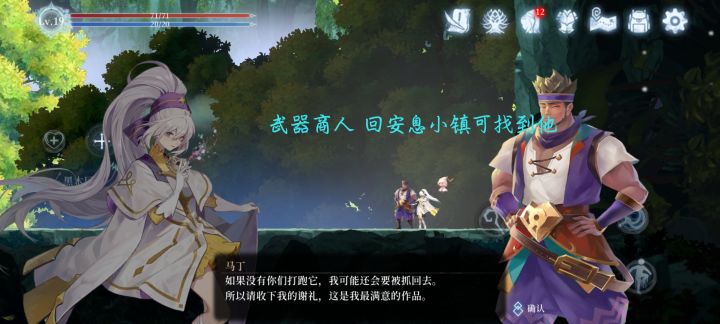 进入翡翠瀑布之后 按照游戏设计好的路线 会直接把玩家引向BOSS 打完之后就是最常用的能力之一 二连跳 而且前面遇到的单眼睛的小飞怪现在也可以踩了 一个下踢键会出现 跳下去会找到一个武器商人 对完话后会返回安息小镇 他卖的鞭子在前期可以过度一下 80多的伤害(1800水滴有点贵) 还有加经验的防具套装 一整哦 其他的嗯...这里有一个地方是去不了的 算是支线任务也是后期完成 到这里差不多了 然后要说的就是不同的地图探索顺序了 因为翡翠瀑布同时对接放逐小镇和引水渠 哦对了 还有宁静水脉 宁静水脉现在没阻挡 可以探了 先说放逐小镇的 这是我经常走的路线