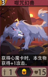 1、自带的3费生物“噬咒幻兽”就挺好,必须升级,升级后每回合涨4点攻击,还是很可观的。配上邪能战斧不要太爽。