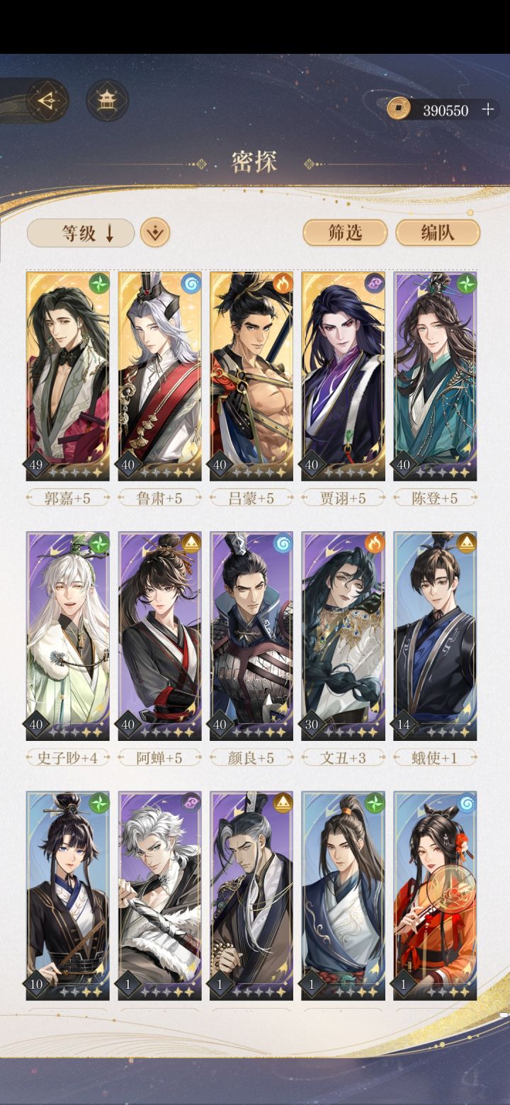 垃圾鸟呜呜呜这样对我,今天在活动池第40抽出了个鲁肃彻底破防。这个号集齐了现在出的所有垫底的密探,垃圾!我还第一天就充了大月卡,我可以接受战力不够,慢慢来都可以,现在想想算了吧,谁爱玩谁玩。
