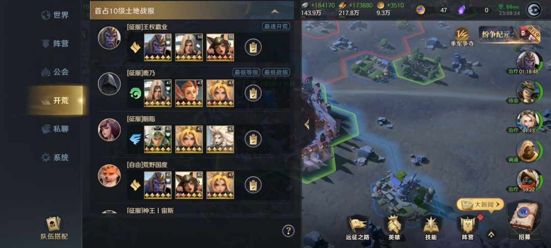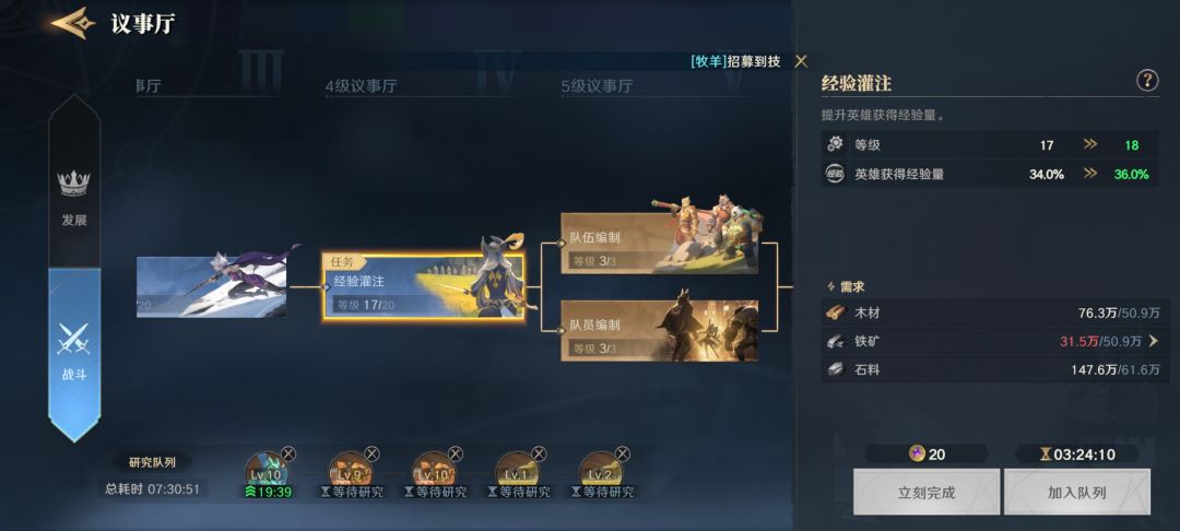 2:开局用第一队按任务开荒,在一队体力用完后,下掉一队战法,换第二队,金币不够可以直接重置等级,此时二队等级和一队一样,体力还是满的