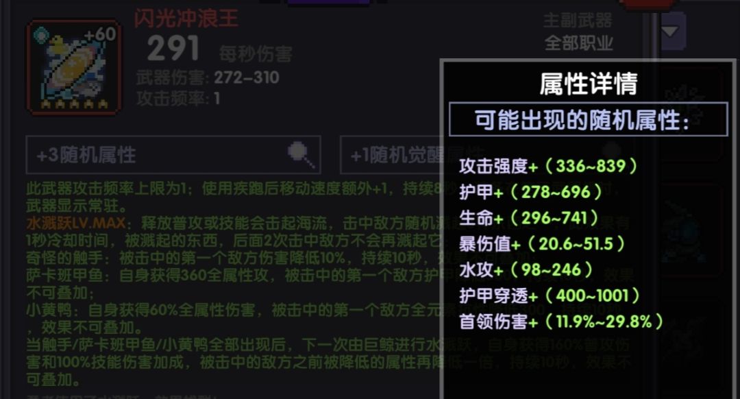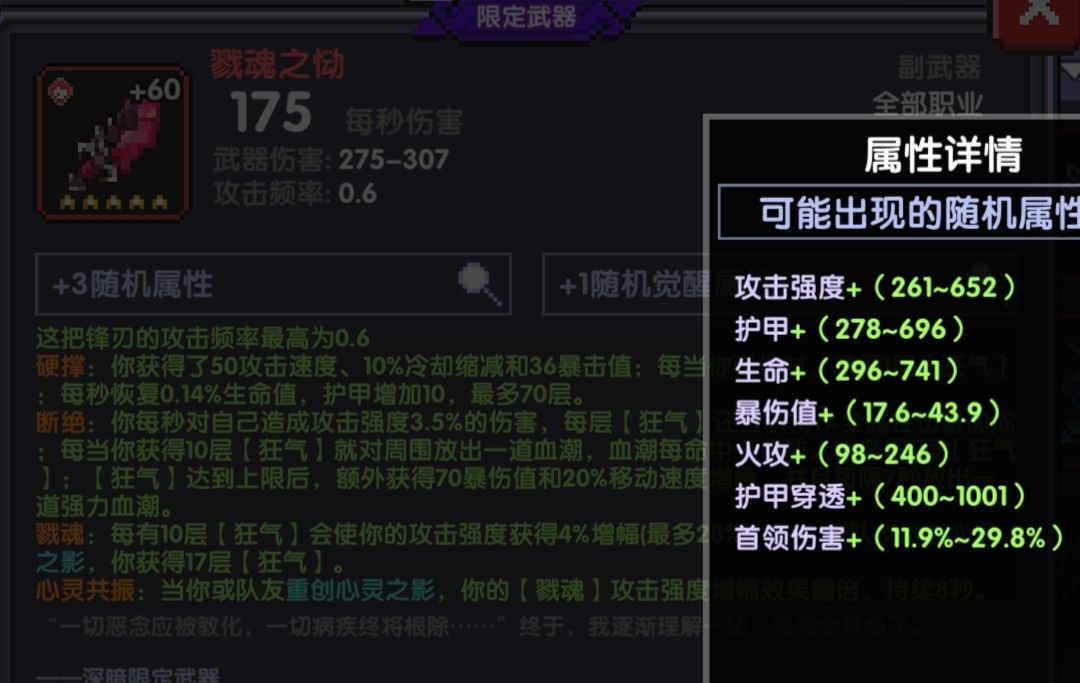 世界通用属性:攻击强度、首领伤害、爆伤值、