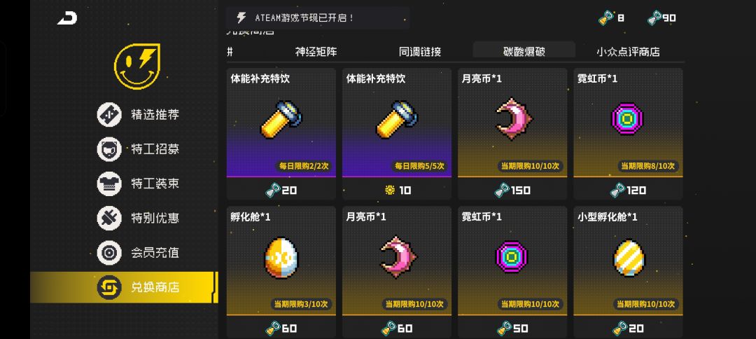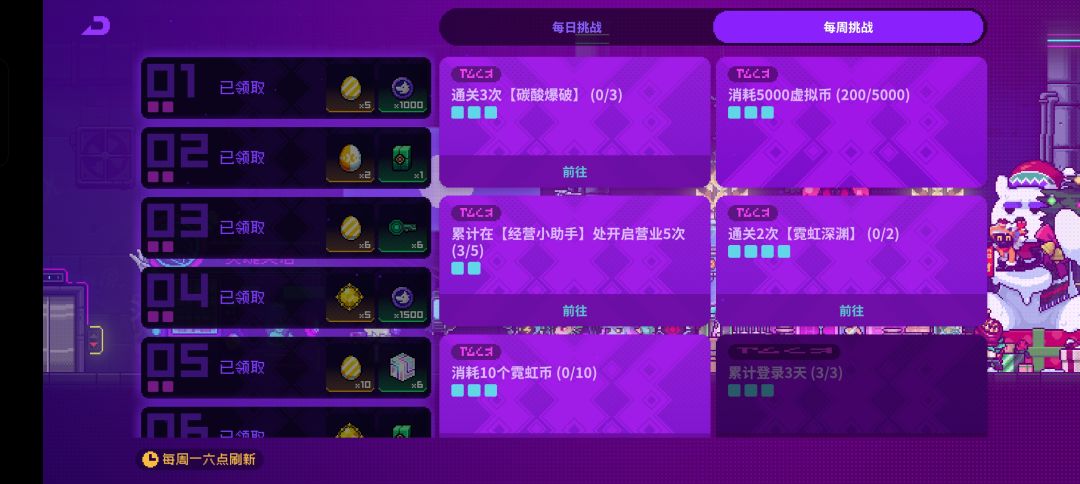 每周商店兑换:3月亮币3霓虹币3大蛋5小蛋