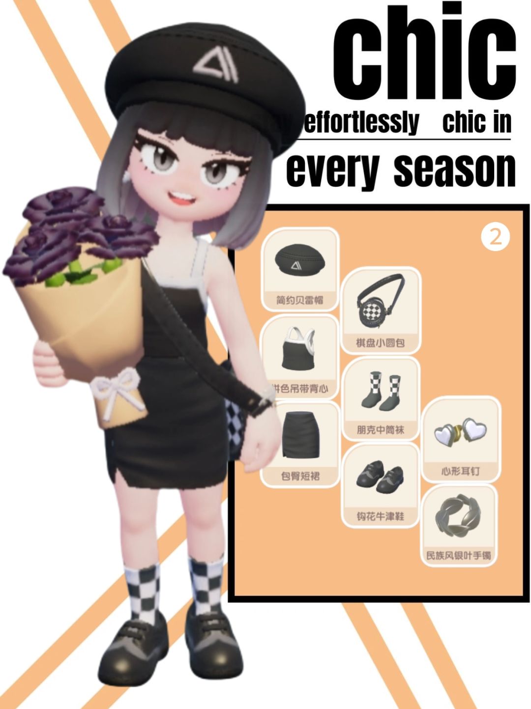第❷套精致黑白格穿搭
