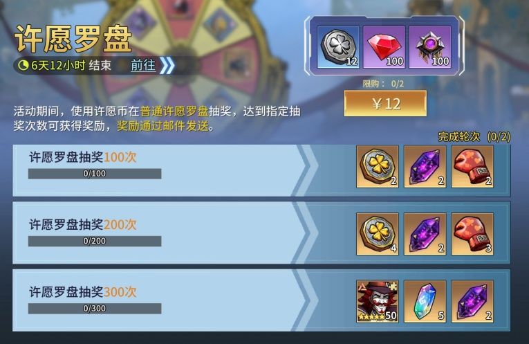 活动期间,使用许愿币在普通许愿罗盘抽奖,达到指定次数可获得高级许愿币、虚空魂石、惊喜拳套、星环宝石、【战车】德温特等奖励,奖励通过邮件发送。