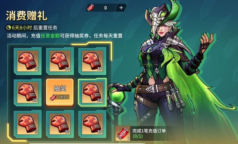 活动期间,每天充值任意金额可获得1张抽奖券,抽奖必得惊喜拳套。