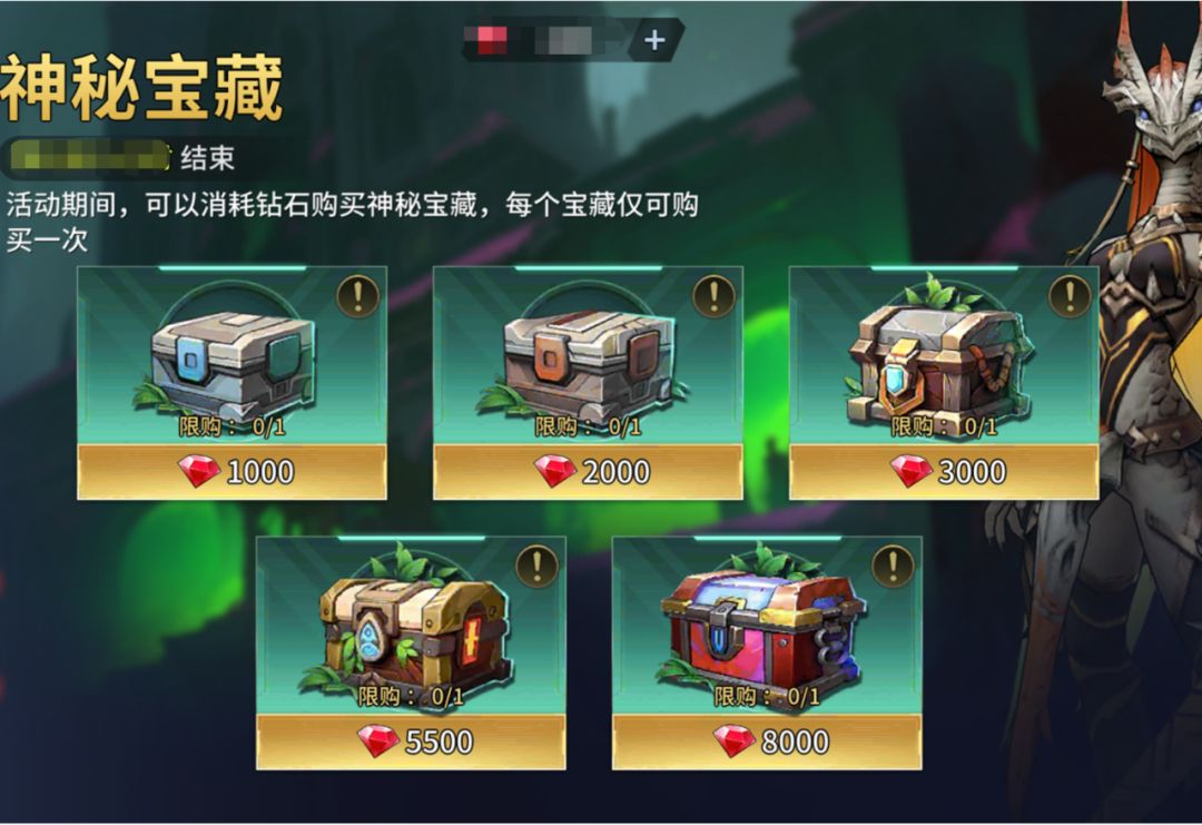 活动期间,可以消耗钻石购买神秘宝藏,每个宝藏仅可购买一次。