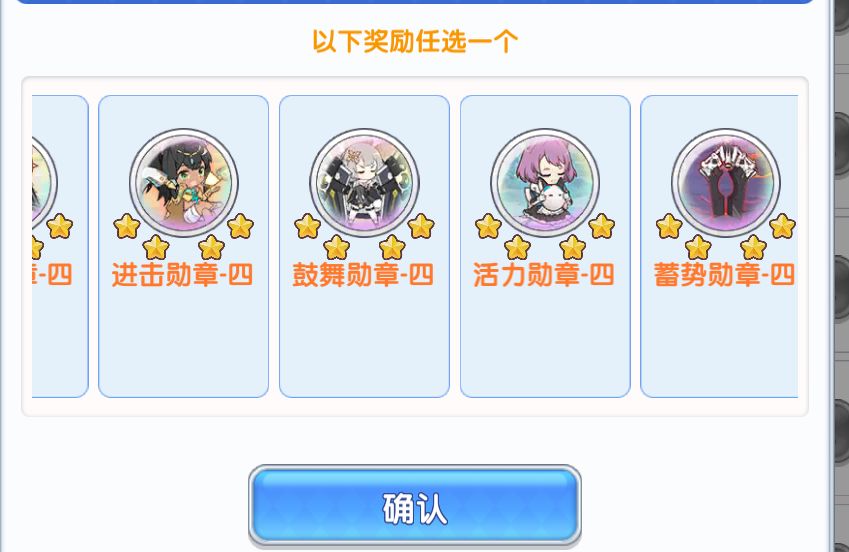 再说说直播间的等级箱子给的超凡印记和四星勋章问题。首先是勋章,一般而言拿蓄势,活力,反击或者有北极光的情况拿闪击都是不错的选择。具体怎么选要根据实际练的角色来定,如果不知道怎么看想要追求通用性那么就蓄势和活力二选一了。如果五星大剑小于等于1个玩家推荐还是拿蓄势。