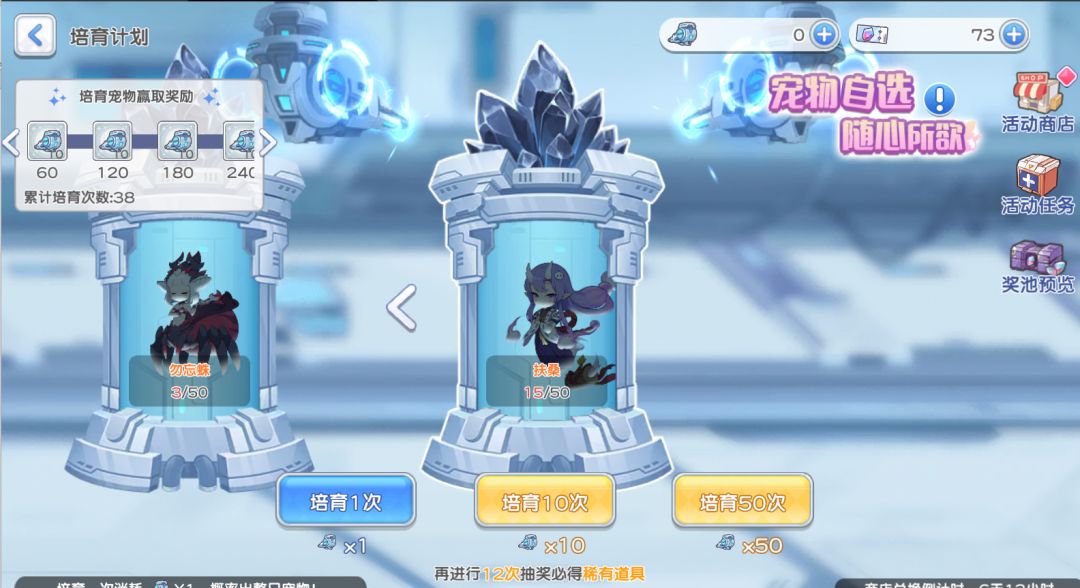 然后说到抽什么宠物,如果是半兽开局的pve向玩家推荐优先扶桑,其他情况一般优先级人鱼>战士>扶桑>吞噬>勿忘蛛。注意不要在这里抽取深渊可以换取的常驻宠物,不划算。最后就是注意该活动保底不继承,而且基本都是保底,所以请以50为单位准备下池,就是比如你距离保底还有50发但是你只有30发那就不抽(当然每日的免费还是要抽的哦),卡着60-100-150-200的节点抽(从50到60送十发等于这十发白送)。