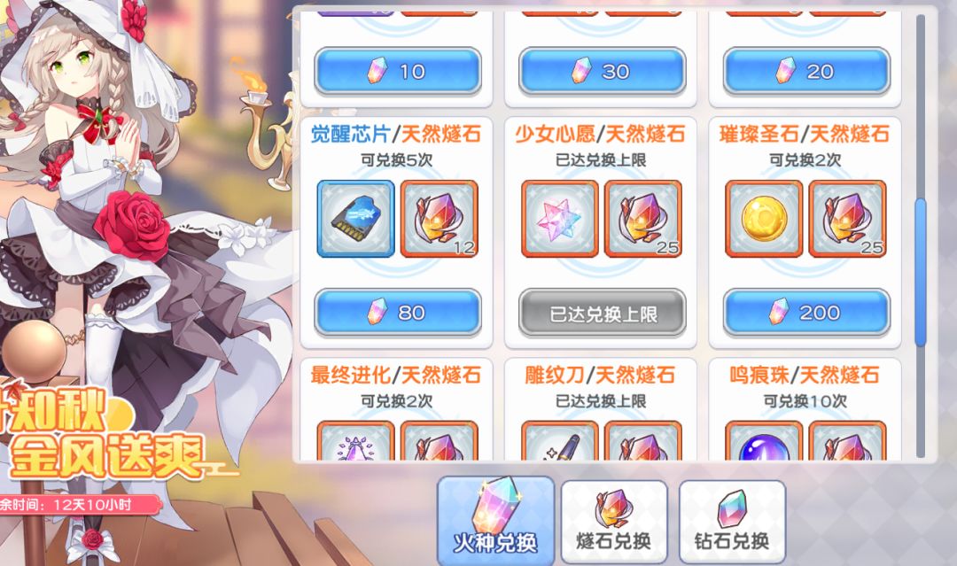 燧石商店:只推荐换取红票,一般先换少女票然后武器票。后面所有资源都不考虑换取,多了可以留下次活动用。钻石商店:只推荐购买三种石头(少女心愿,最终进化,璀璨圣石),其他一律不买。