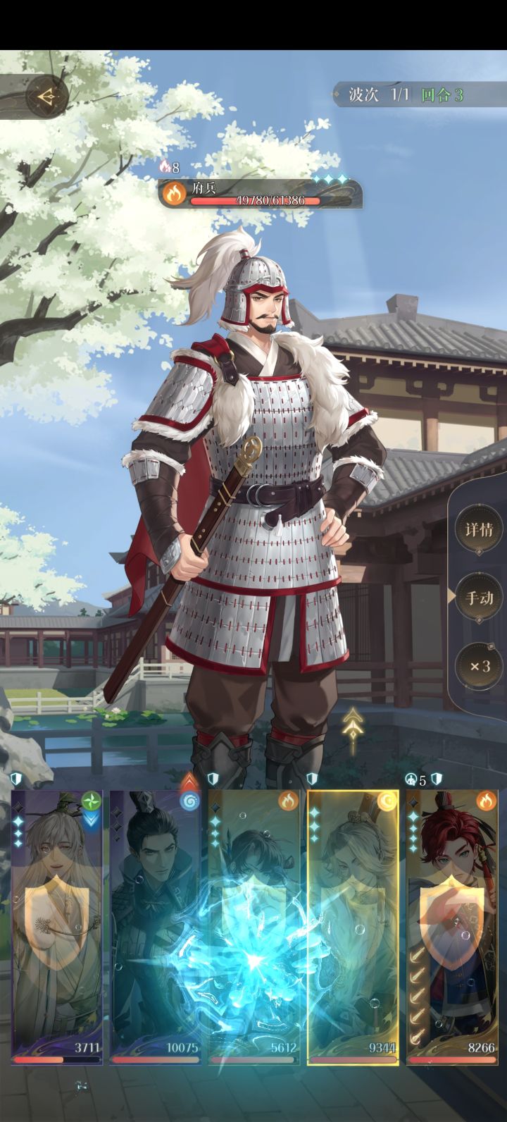 BOSS放技能前,我们的回合,正好颜良三灯亮,开大盾。其他四人下拉防御。