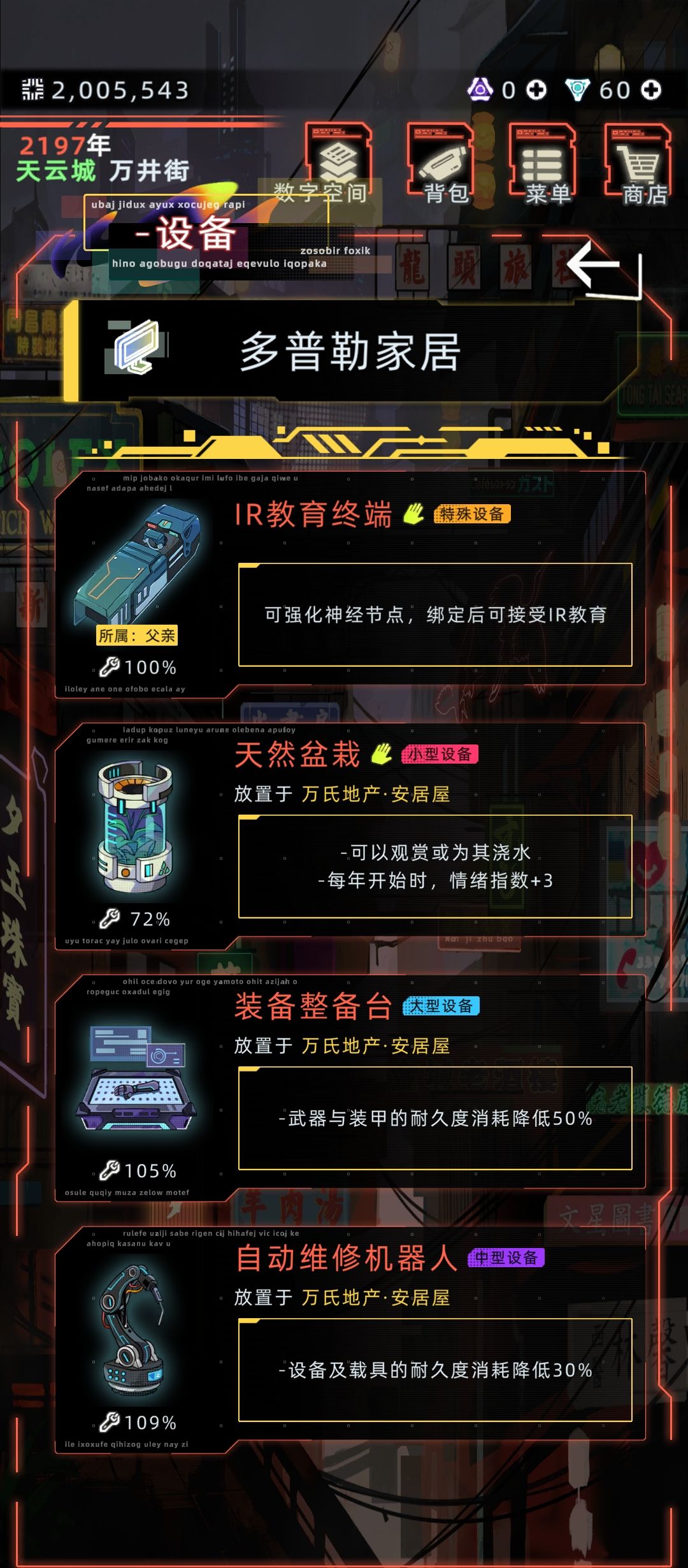 再加上一点点的小操作:先买一个自动维修机器人,然后放在房子里,这时你就会发现车辆耐久度下降的非常慢了,要是不想一直保留的话,这样也不错了。但是,如果你在这时候把机器人卖掉(在耐久消耗完之前卖,满耐久的都行),然后再买一个。之后几年,你就会惊奇的发现,耐久度竟然还能往上涨!!!很神奇吧?